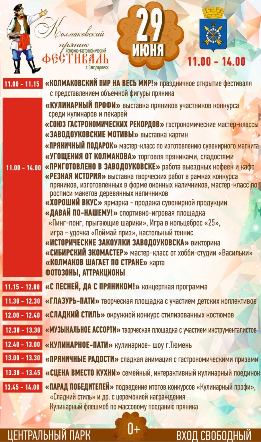 «Колмаковский пряник» в Заводоуковске намечен на 29 июня. Кроме пряничных арт-объектов в программе театрализованное шествие и кулинарные мастер-классы.
