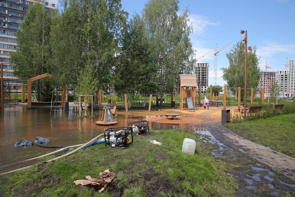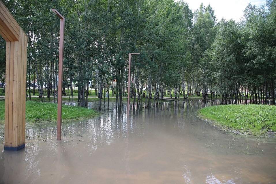 Обильные дожди затопили зону отдыха, которую девелоперская компания разбила на собственные средства и планировала подарить Тюмени в честь Дня города.