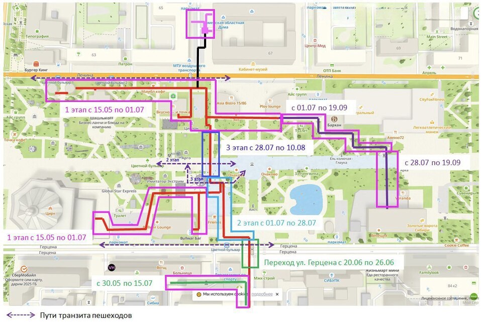 Часть Цветного бульвара в центре Тюмени перекроют почти на все лето