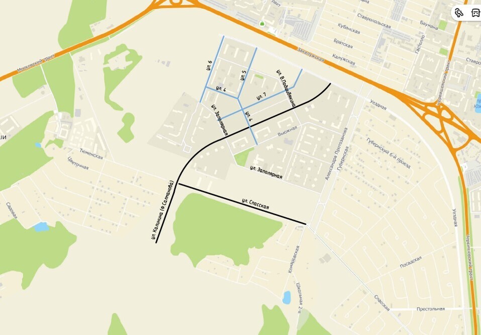 Новая улица (Салманова) в перспективе должна была влиться в развязку, которая соединит ее с улицй Калинина. В свою очередь Калинина, по замыслу властей, должна уходить в автомобильный тоннель под железной дорогой с выходом на Первомайскую в центре Тюмени.