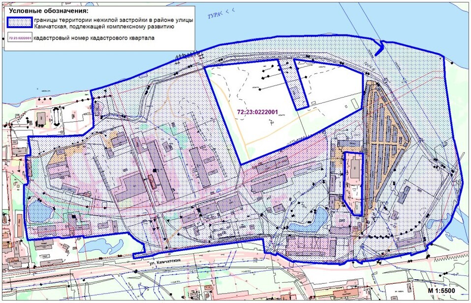 Огромную территорию, примыкающую к Туре, выставили на торги по процедуре КРТ. Региональные власти предлагают реновировать 49,59 га на улице Камчатской. Уже начался прием заявок, сам аукцион должен пройти третьего июля.