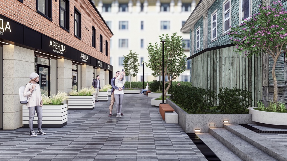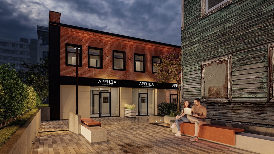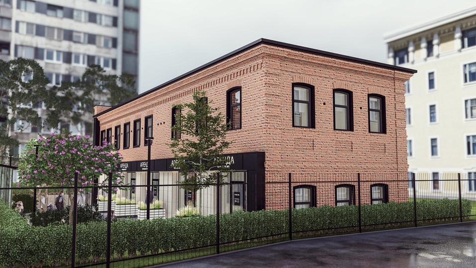 После реновации на первом этаже кирпичного дома будет работать кофейня с цветочным магазином, на втором — стоматология.