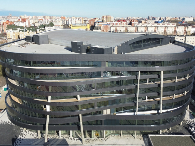 Здание начали строить еще в 2008 г., но объект был заморожен. В 2021 г. достраивать его взялось ООО «Теннис-палас» (структура «Мостостроя-11»).